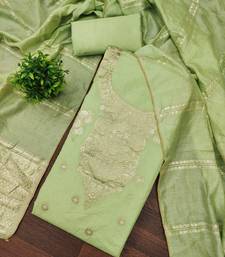 Premium light green heavy zari woven unstitched salwar suit with dupatta