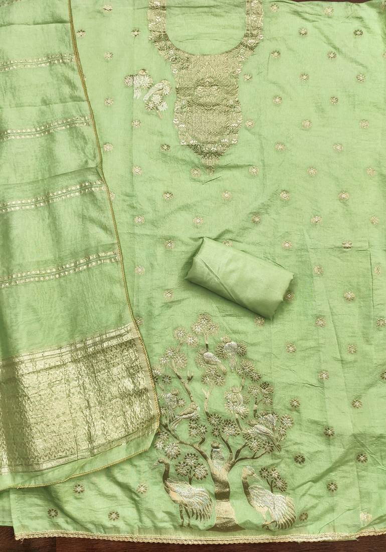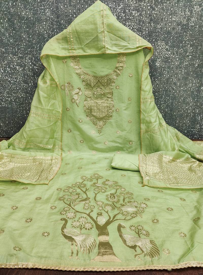 | Product Name | Premium Light Green Heavy Zari Woven Unstitched Salwar Suit With Dupatta | |