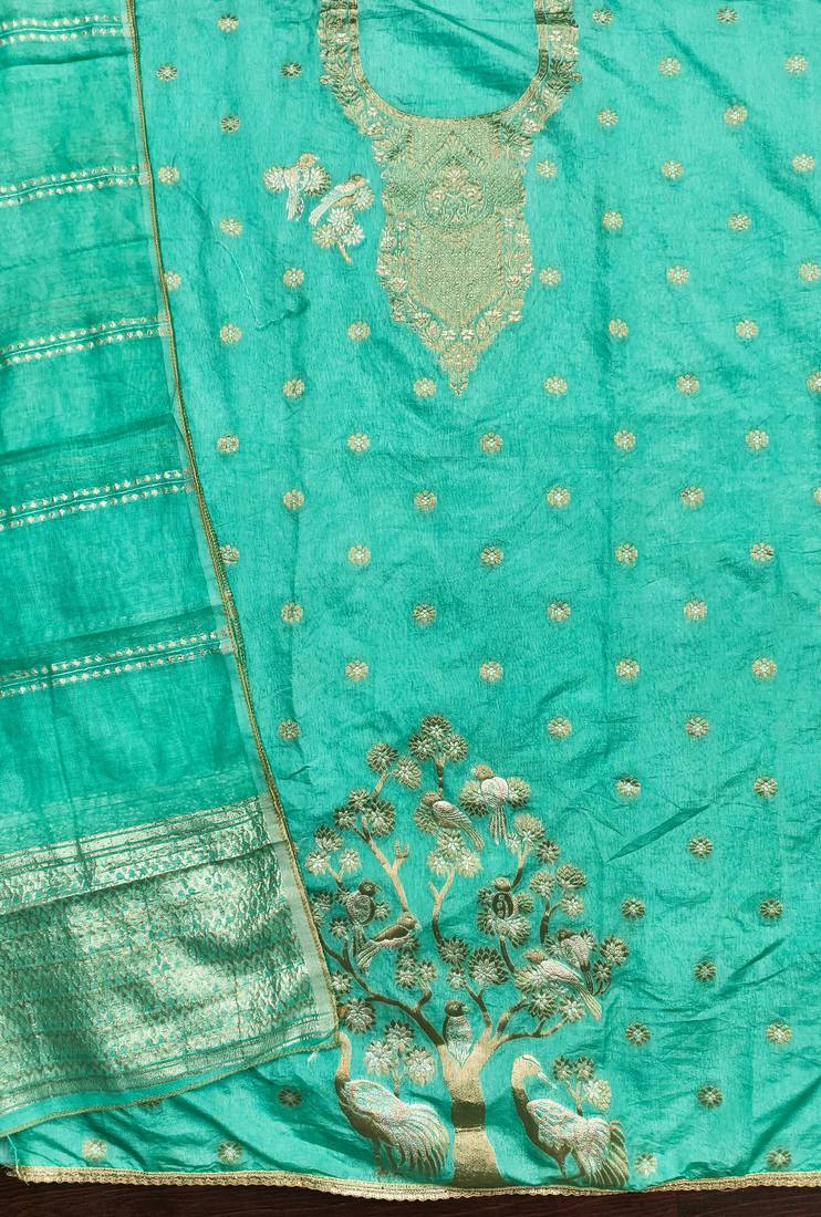 Premium sea green heavy zari woven unstitched salwar suit with dupatta