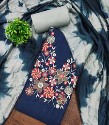 Stylish slub cotton embroidered dress material with dyable chanderi dupatta unstitched
