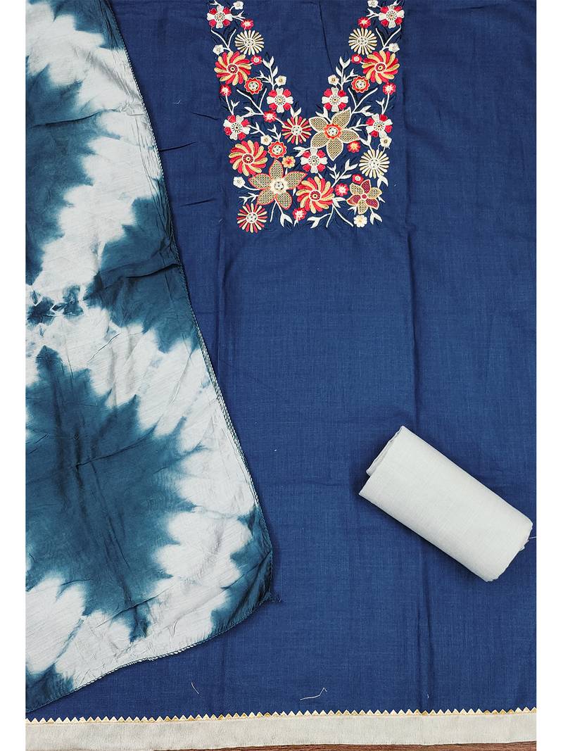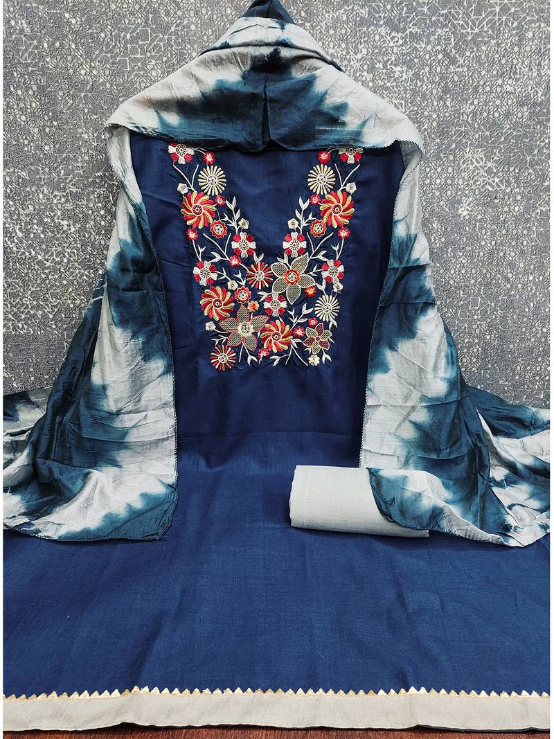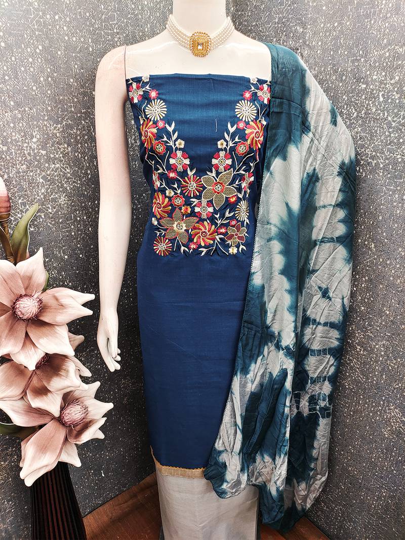 | Product Name | Stylish Slub Cotton Embroidered Dress Material With Dyable Chanderi Dupatta | |