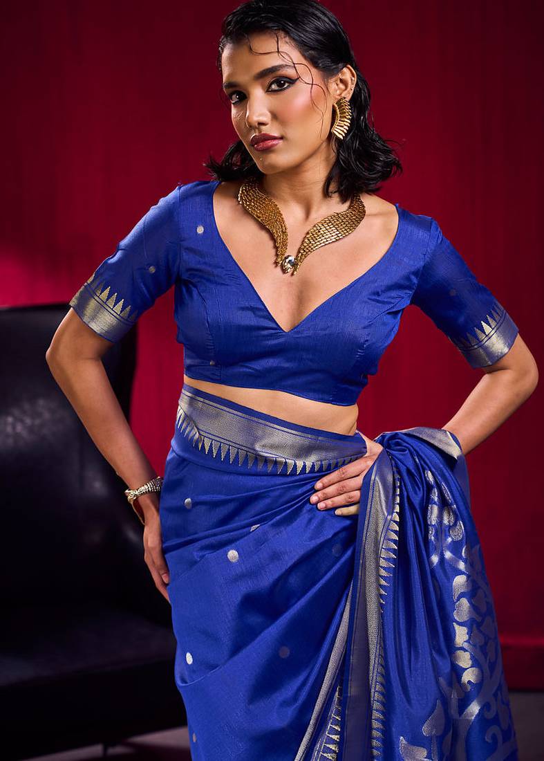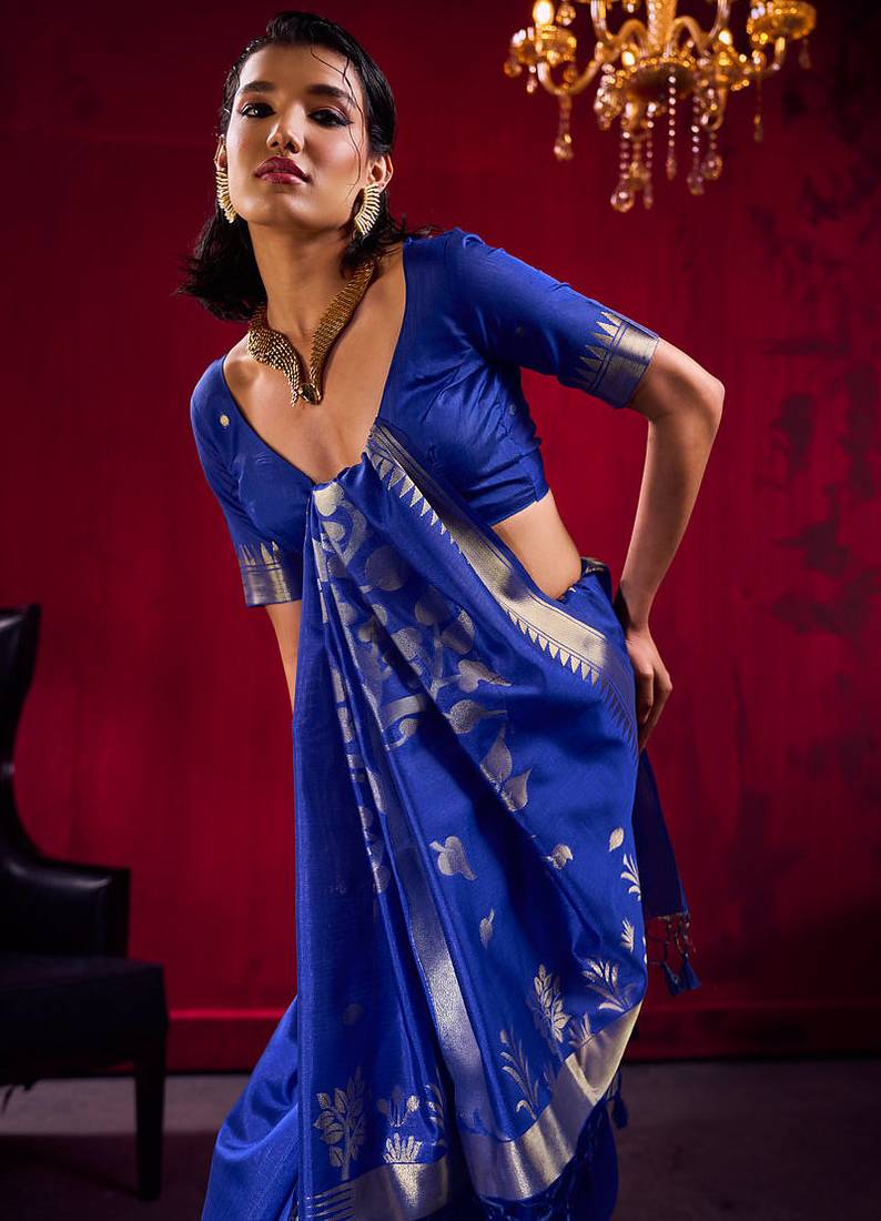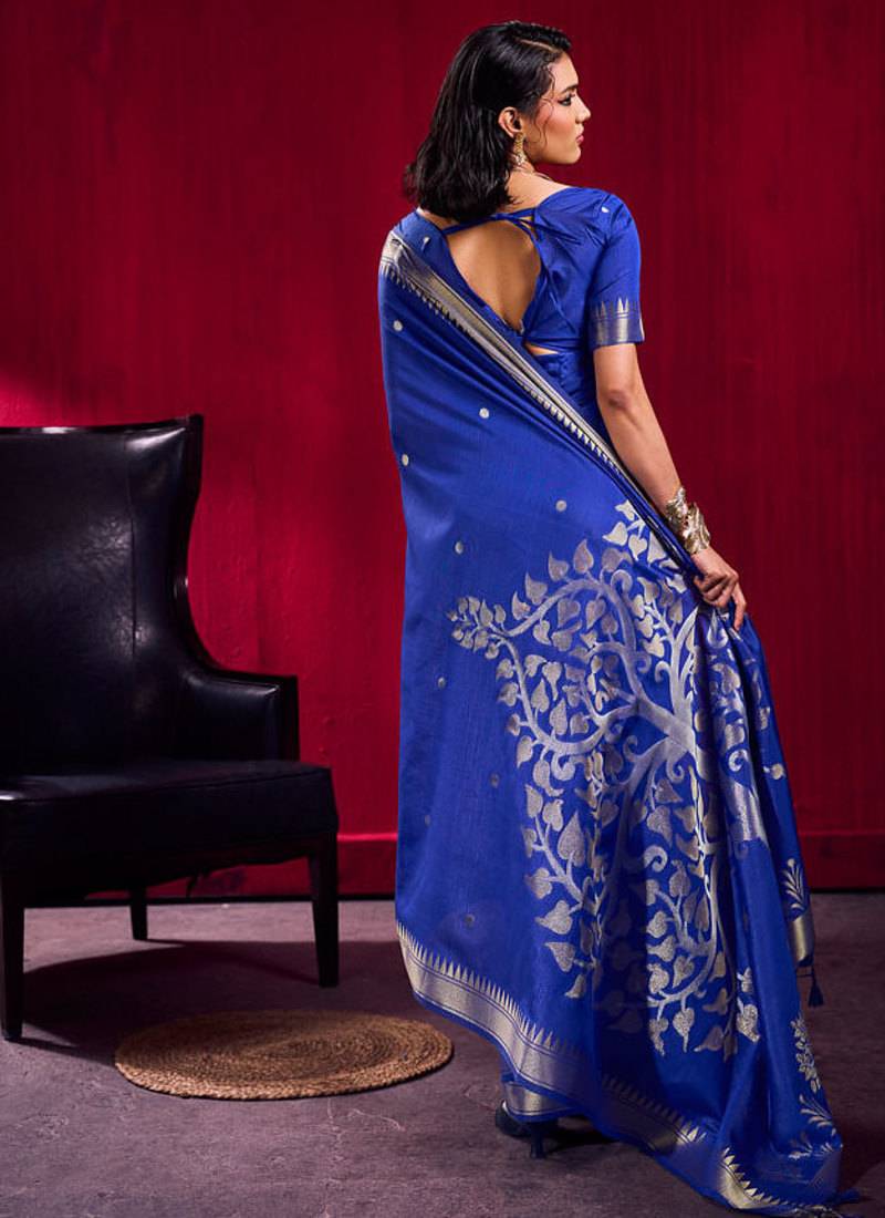 | Product Name | Blue Satin Linen Silk Handloom Zari Weaving Saree With Blouse | |