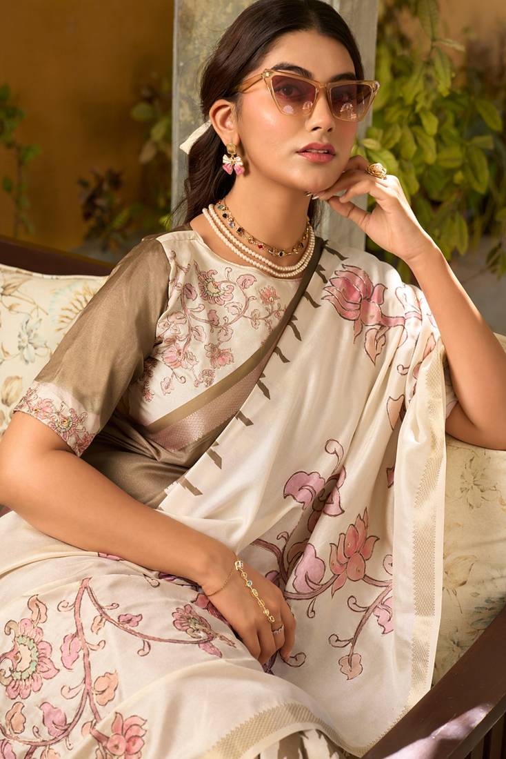 | Product Name | Brown & Cream Pure Tussar Silk Printed Saree With Blouse | |