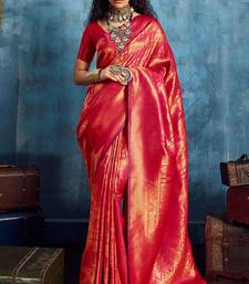 Dark pink silk handloom zari weaving saree with blouse