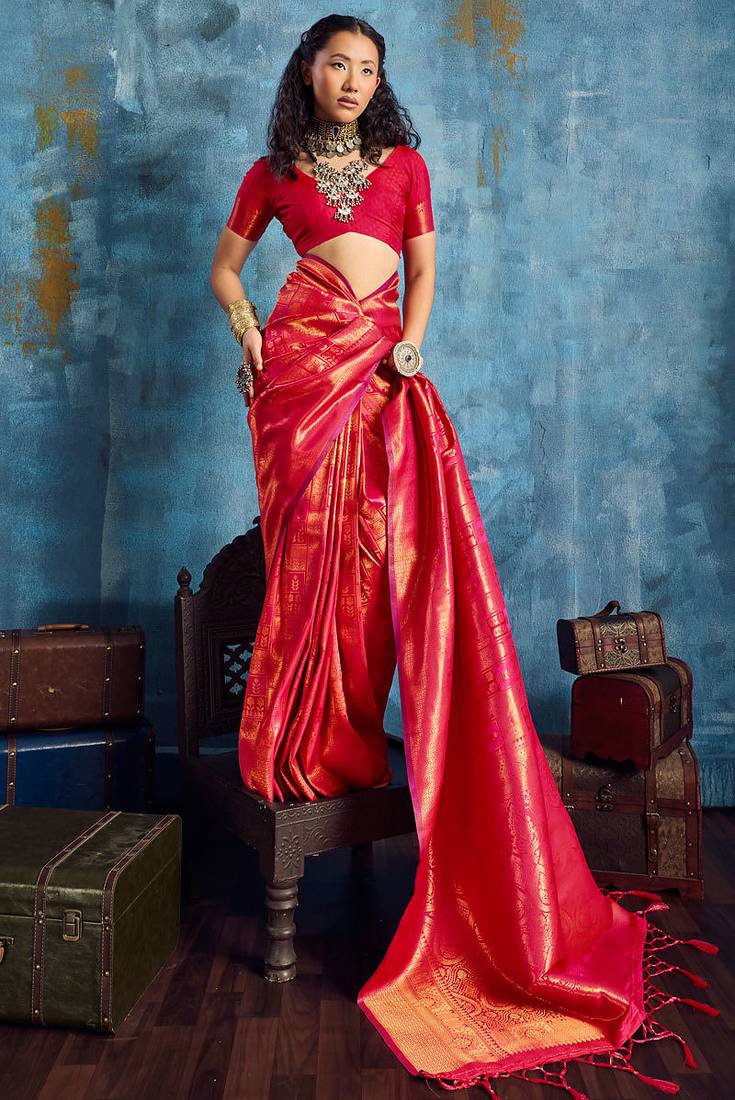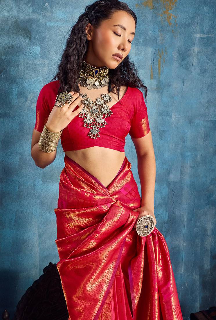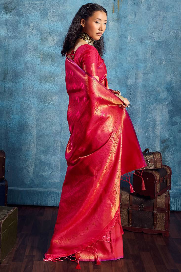| Product Name | Dark Pink Silk Handloom Zari Weaving Saree With Blouse | |