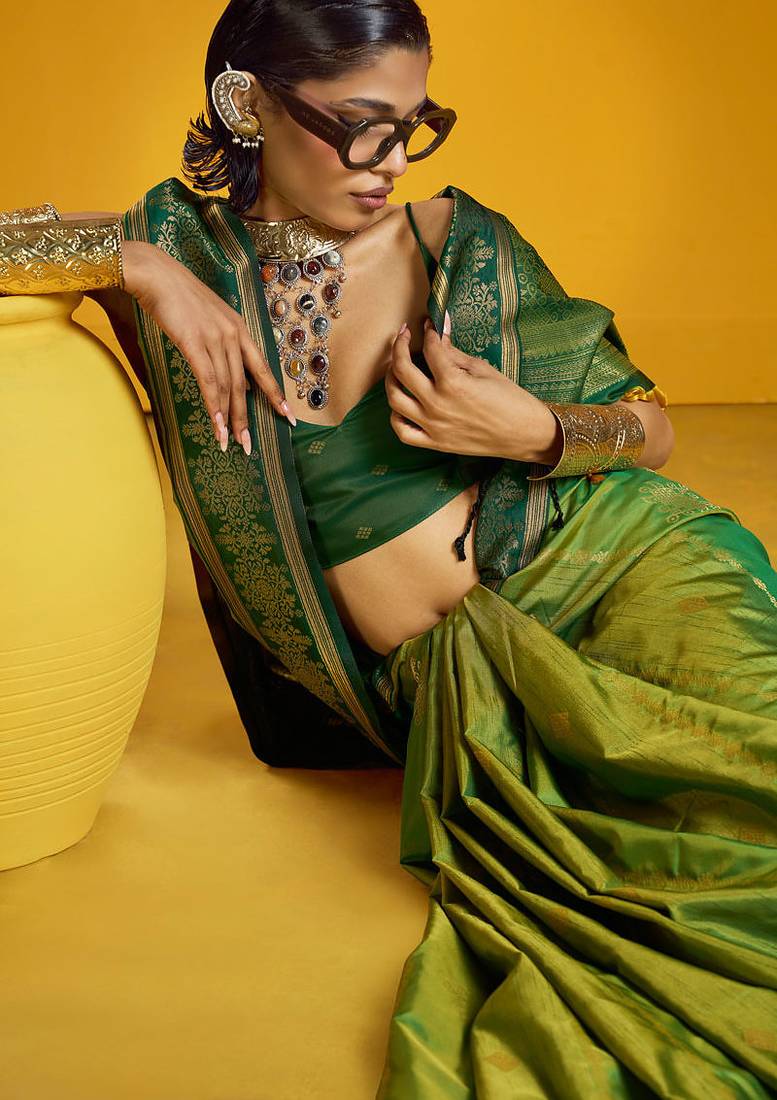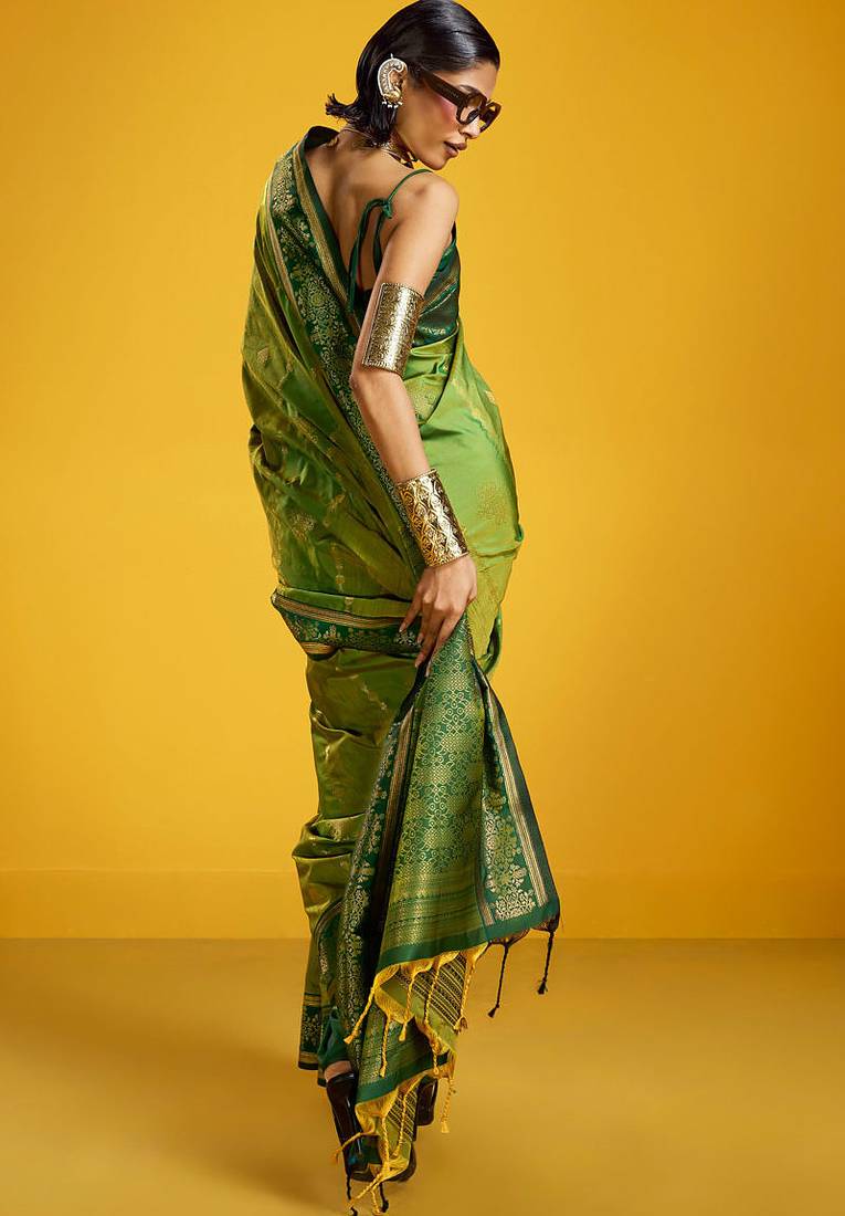 | Product Description | Saree Fabric: Pure Silk, Saree Color: Green, Blouse Fabric: Pure Silk, Blouse Color: Green, Work: Handloom Zari Weaving, Remark: Saree With Blouse |