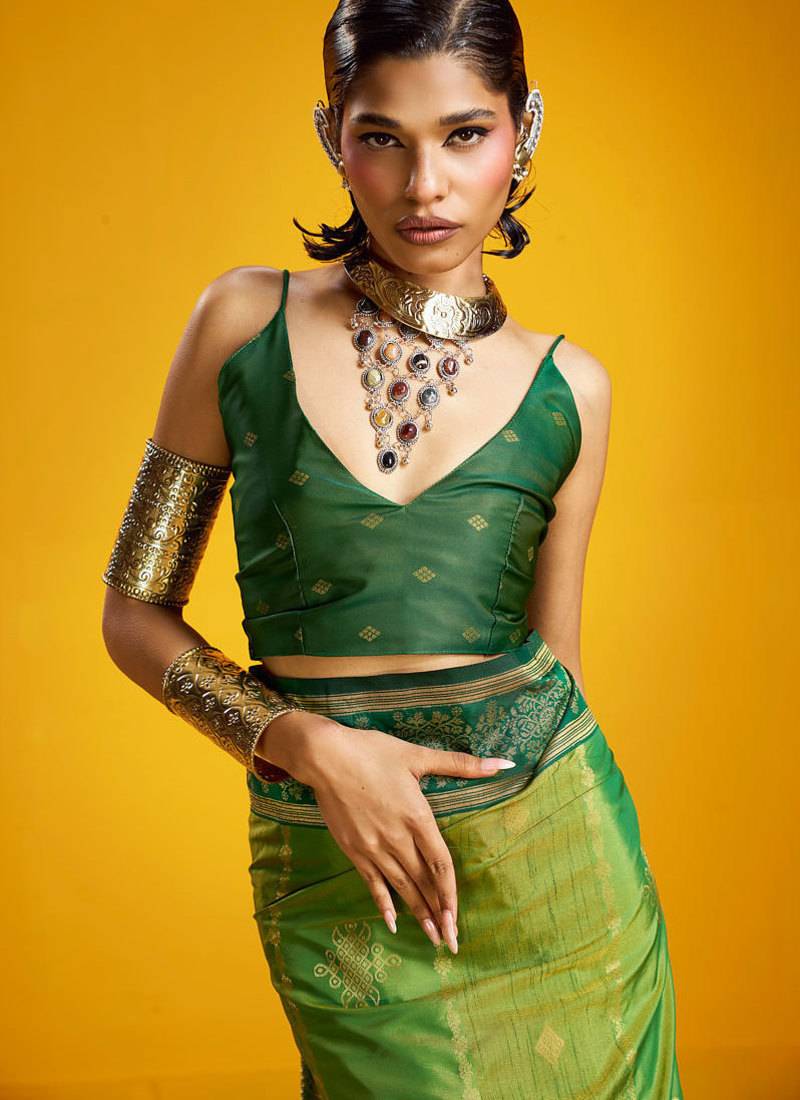 | Product Name | Green Pure Silk Handloom Zari Weaving Saree With Blouse | |