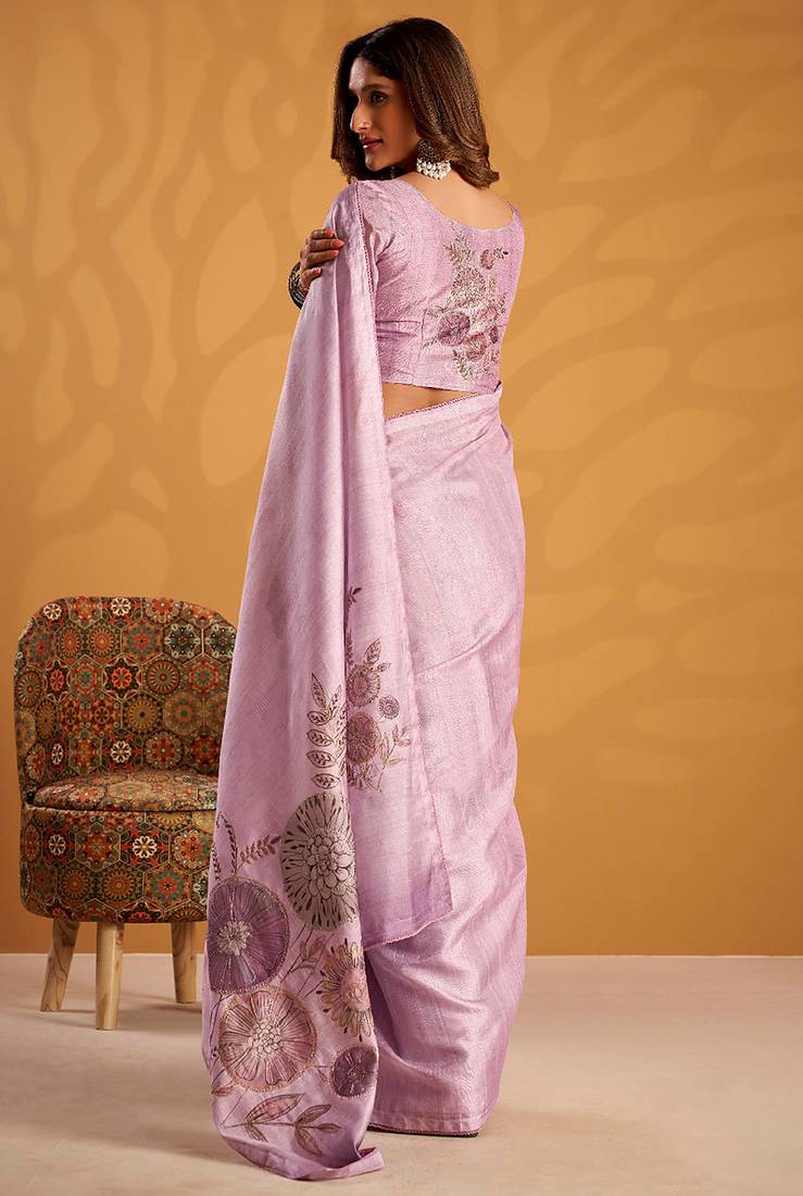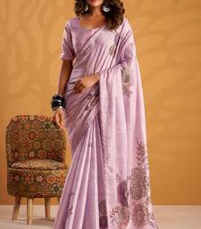 Lavender pure tussar silk printed with kasheeda work saree with blouse