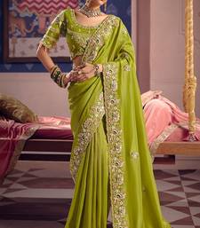Lime viscose zari tissue silk heavy embroidery, beads with sequince work saree with blouse