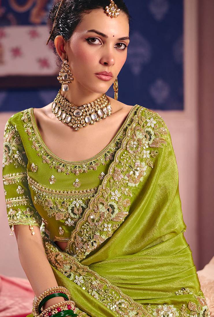 | Product Name | Lime Viscose Zari Tissue Silk Heavy Embroidery, Beads With Sequince Work Saree With Blouse | |
