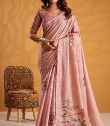 Pink pure tussar silk printed with kasheeda work saree with blouse