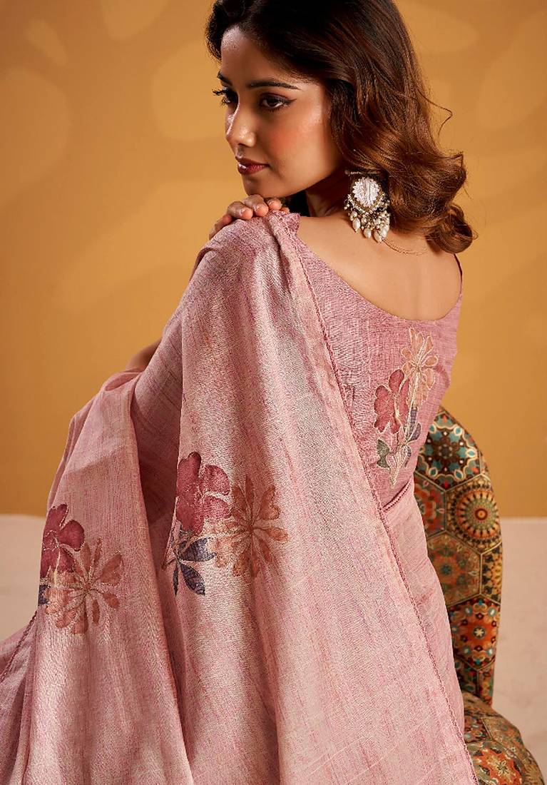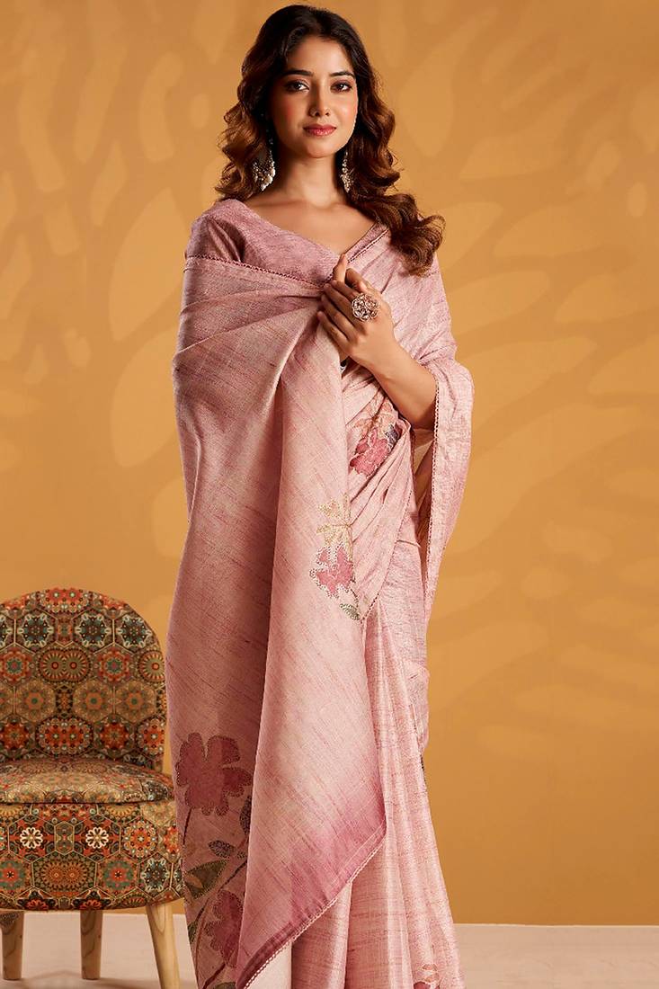 | Product Name | Pink Pure Tussar Silk Printed With Kasheeda Work Saree With Blouse | |