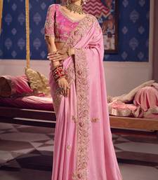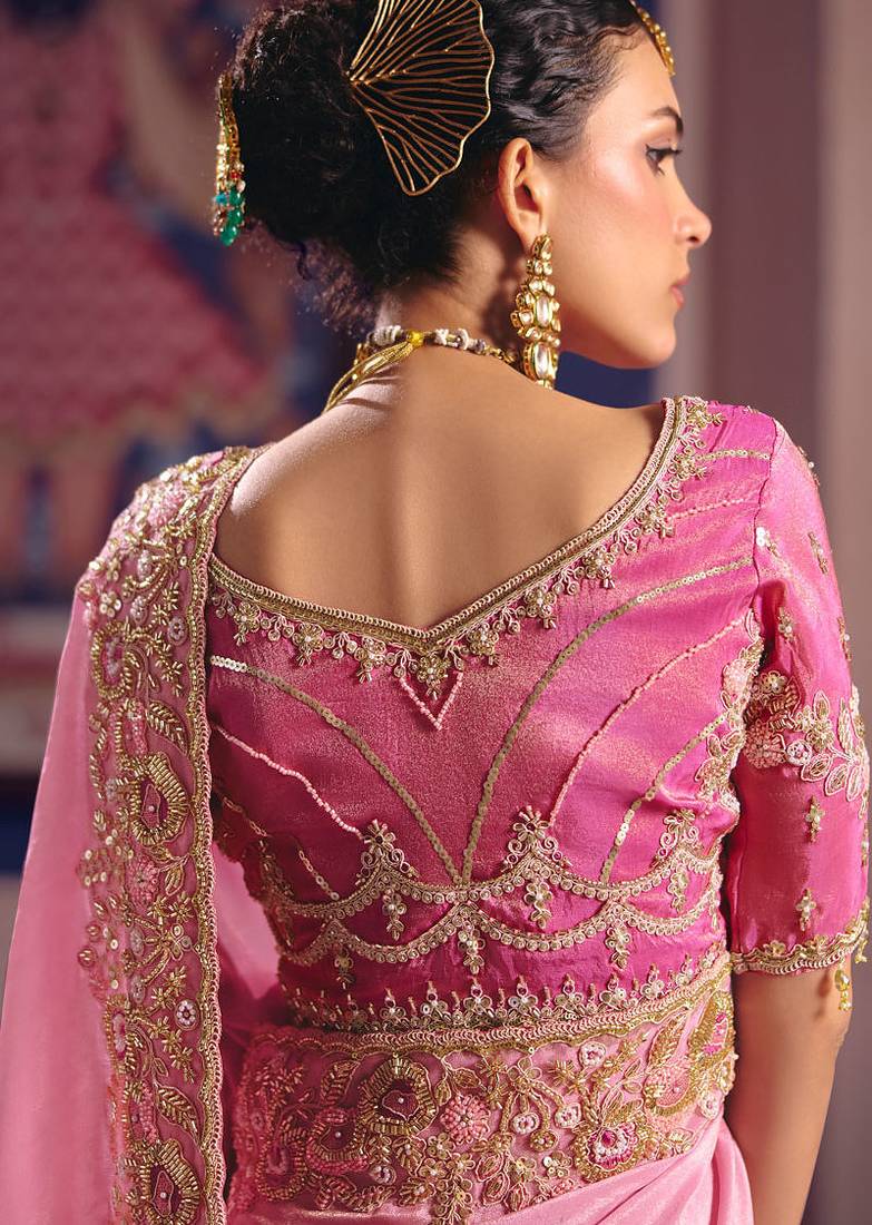 Pink viscose zari tissue silk heavy embroidery, beads with sequince work saree with blouse