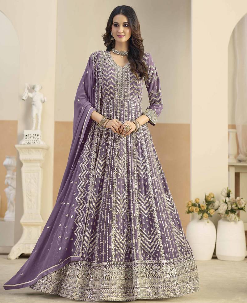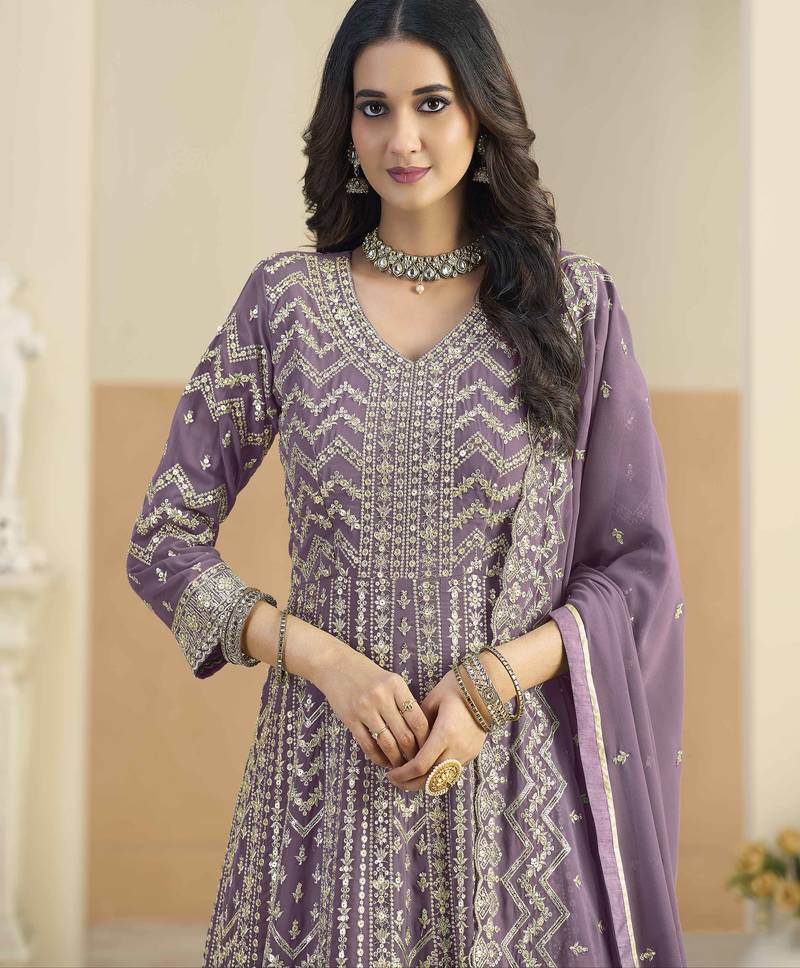 | Product Name | Purple Faux Georgette Heavy Thread Embroidery With Sequins Work Salwar Kameez | |