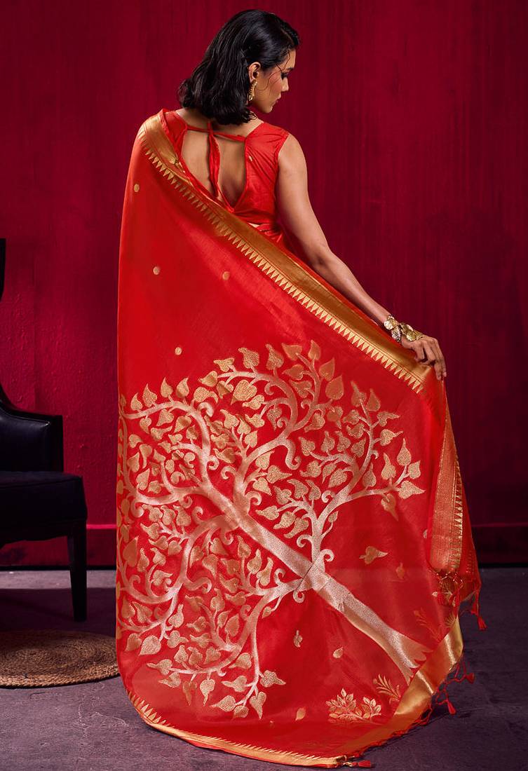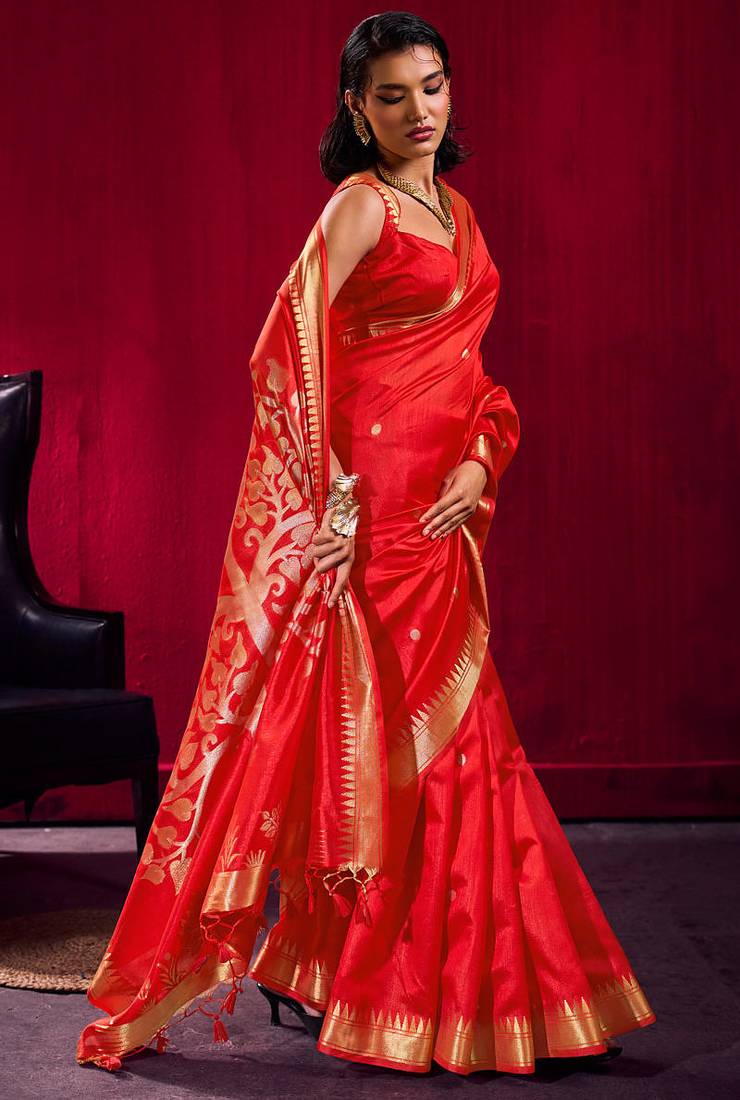 | Product Name | Red Satin Linen Silk Handloom Zari Weaving Saree With Blouse | |