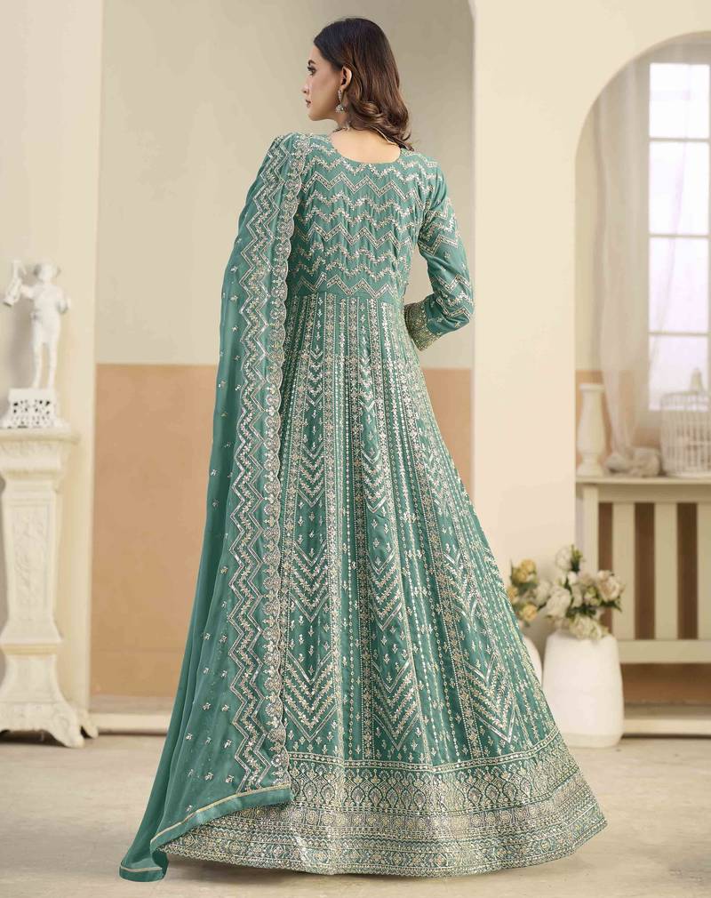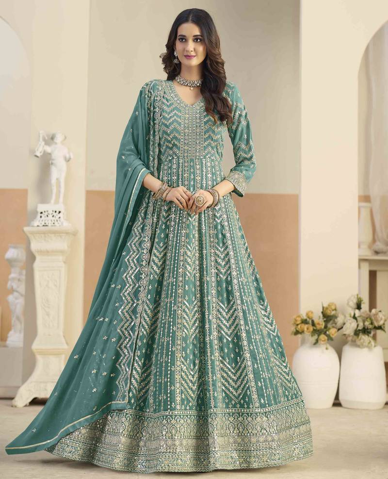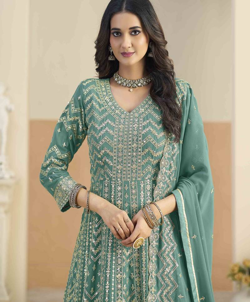 | Product Name | Teal Faux Georgette Heavy Thread Embroidery With Sequins Work Salwar Kameez | |