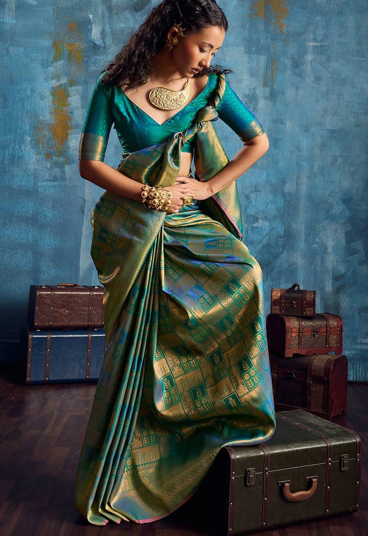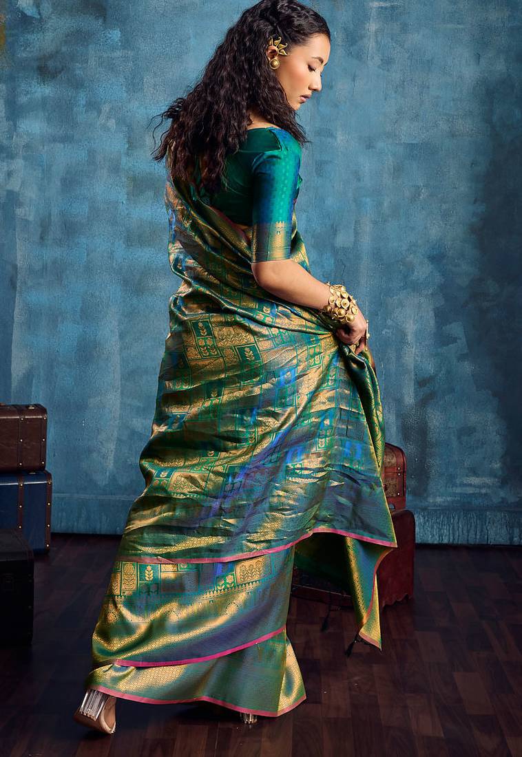 | Product Description | Saree Fabric: Silk, Saree Color: Teal, Blouse Fabric: Silk, Blouse Color: Teal, Work: Handloom Zari Weaving, Remark: Saree With Blouse |