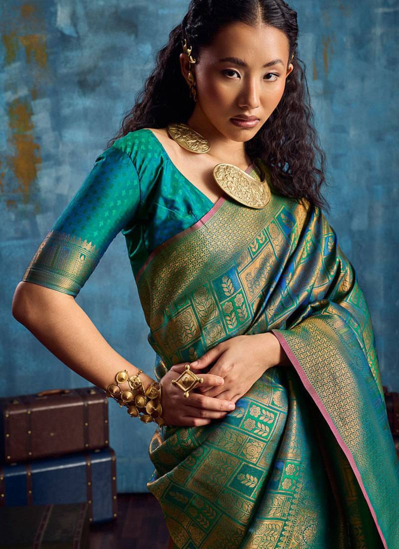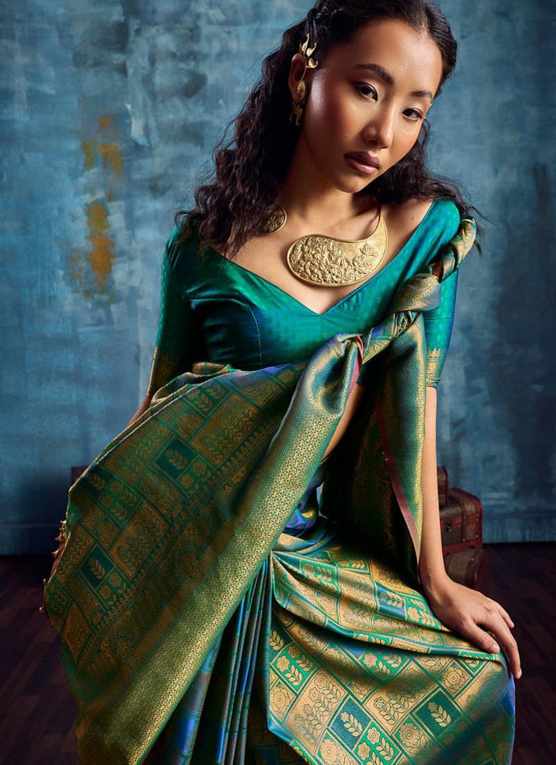 | Product Name | Teal Silk Handloom Zari Weaving Saree With Blouse | |