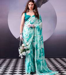 satin silk saree with floral print