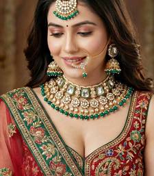| Product Name | 18 Kt Gold Plated Kundan Bridal & Semi Bridal Necklace Set With Tikka & Nath | |
