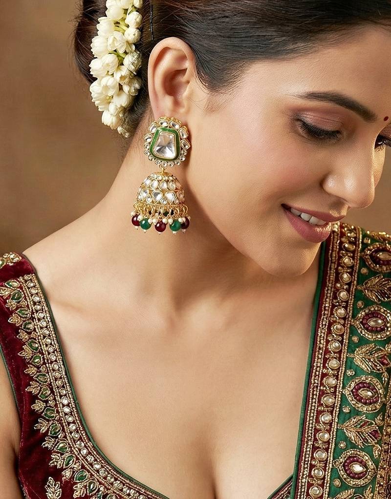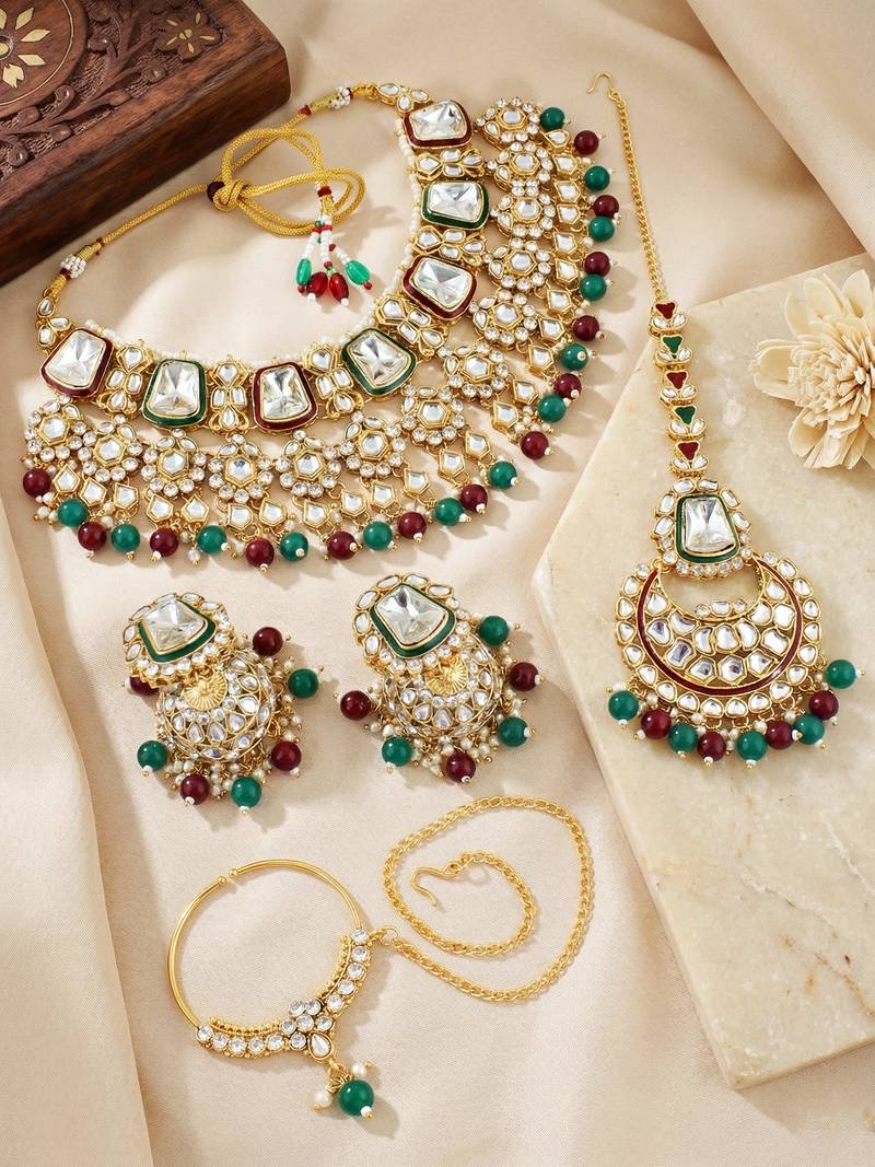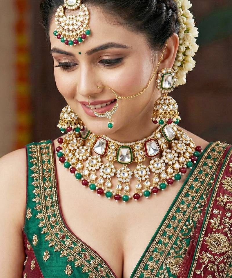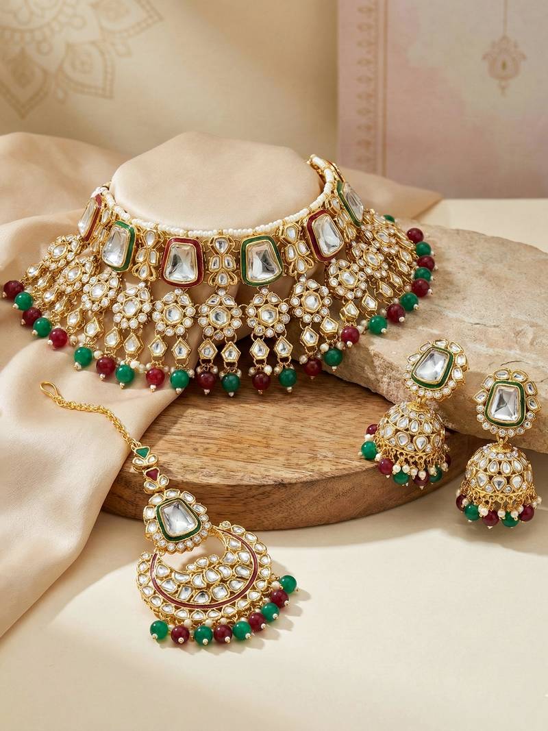 | Product Name | 18 Kt Gold Plated Maroon Green Kundan Bridal & Semi Bridal Necklace Set | |