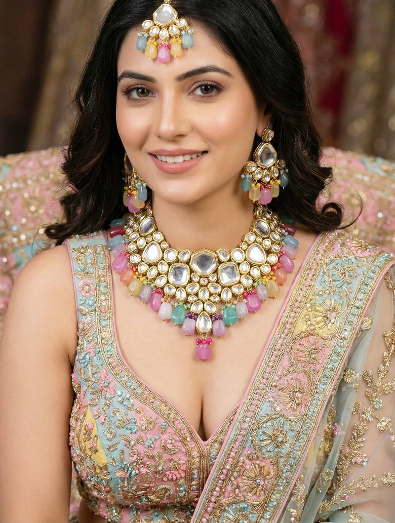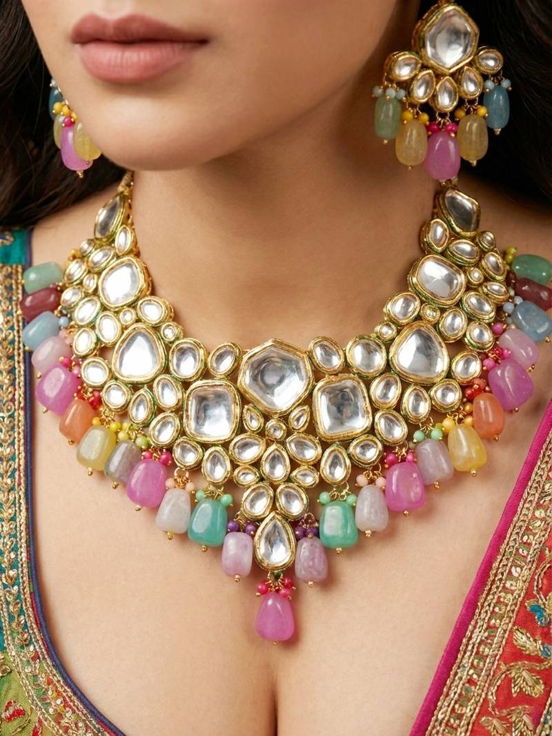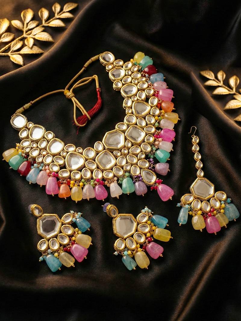 | Product Name | 18 Kt Gold Plated Multi Color Kundan Bridal & Semi Bridal Necklace Set | |