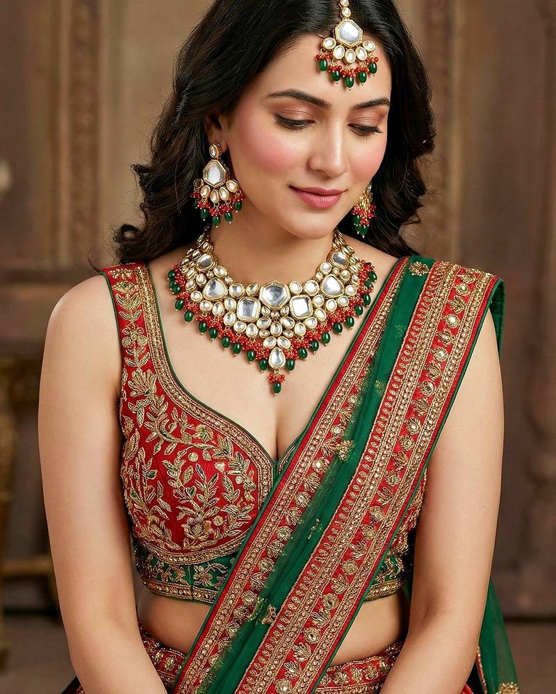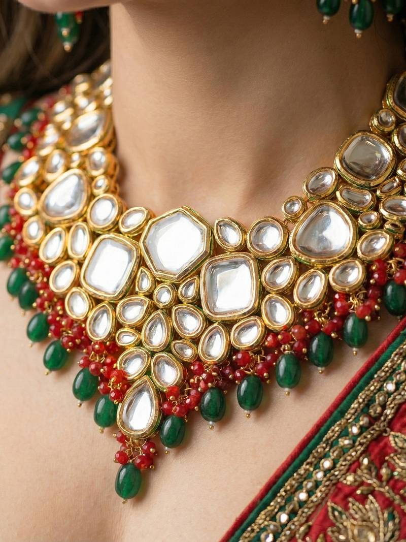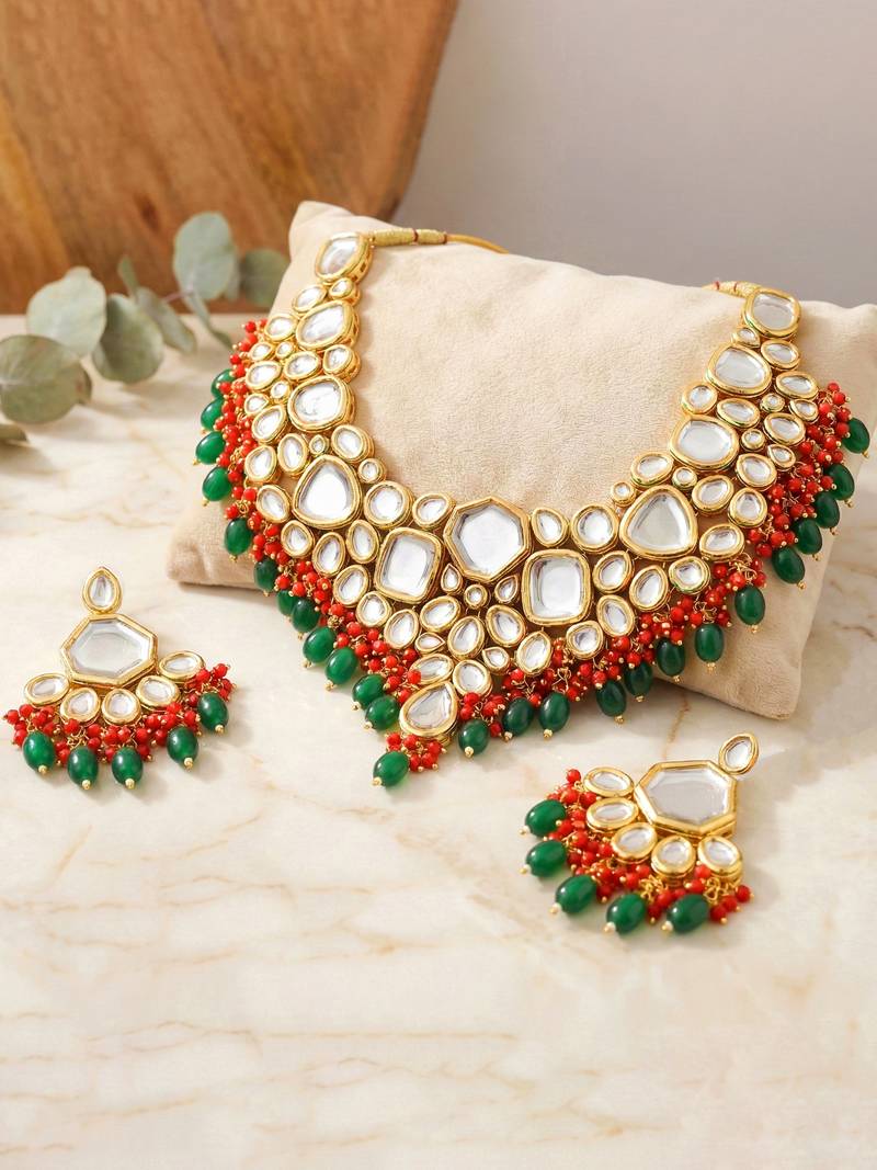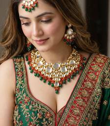 | Product Name | 18 Kt Gold Plated Red Green Kundan Bridal & Semi Bridal Necklace Set | |
