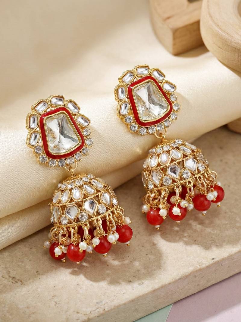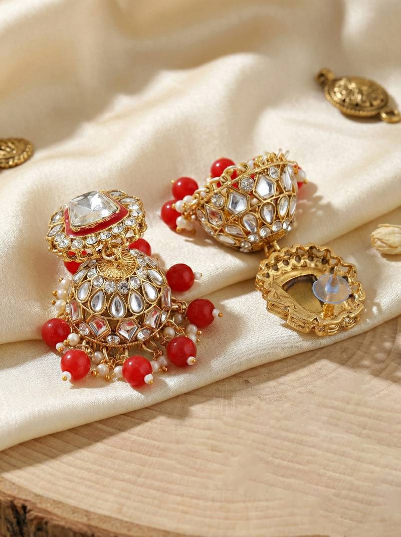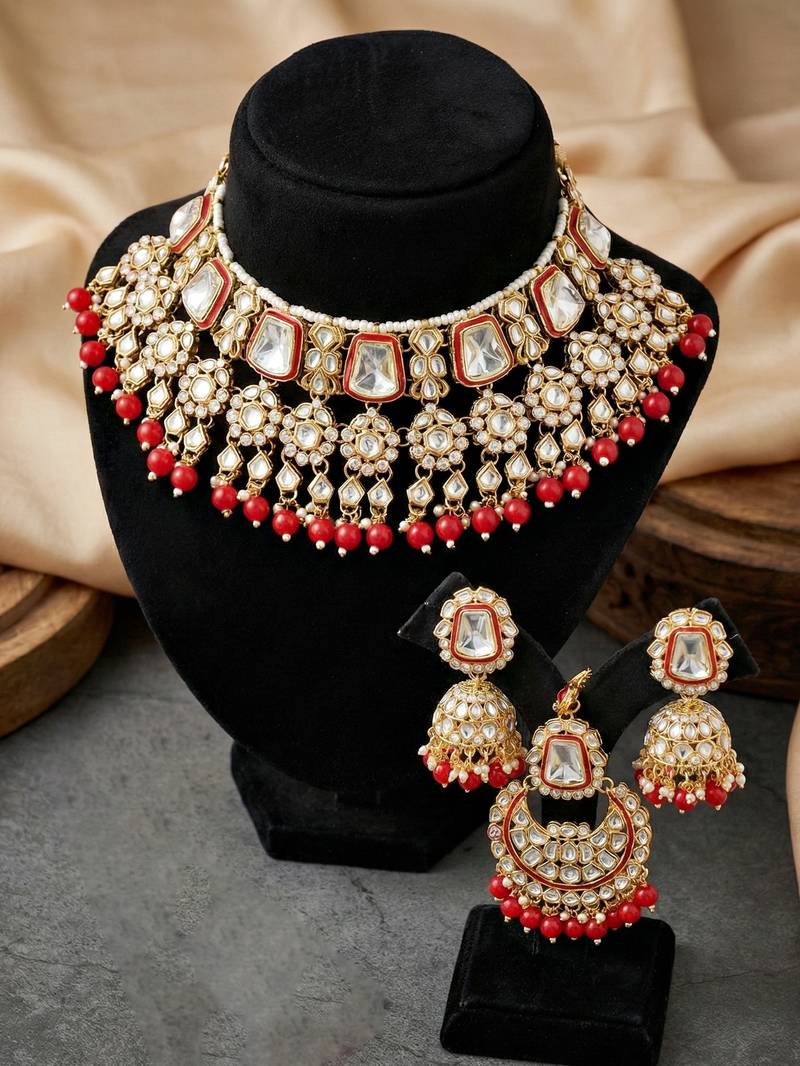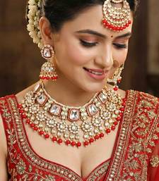 | Product Name | 18 Kt Gold Plated Red Kundan Bridal Necklace Set With Tikka & Nath | |