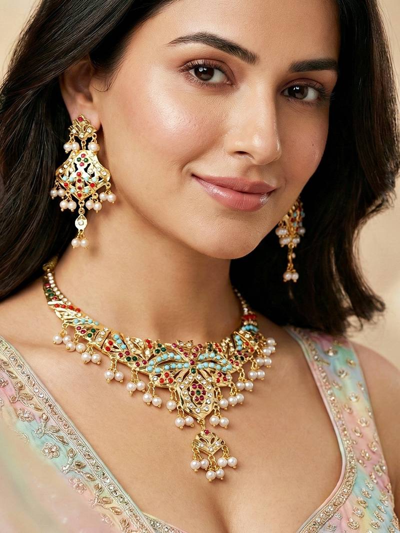 | Product Name | Gold Plated Navratan Necklace Set With Earrings | |