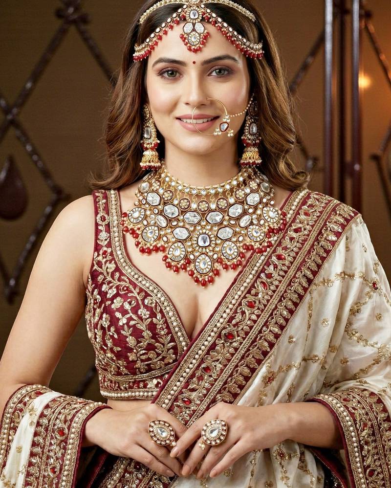 | Package Details | 1 Necklace / 1 Pair Of Earrings / 1 Mathapatti With Sheeshpatti / 1 Pair Of Finger Rings / 1 Nath | |