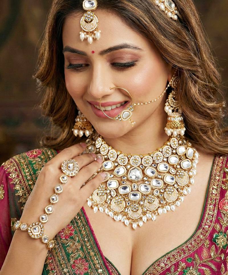 | Product Description | Enhance Your Bridal Look With This Exquisite Traditional Kundan Jewellery Set Designed To Reflect Royal Elegance. Crafted With Intricate Gold Plated ,This Stunning Set Features Premium Kundan Stones. |