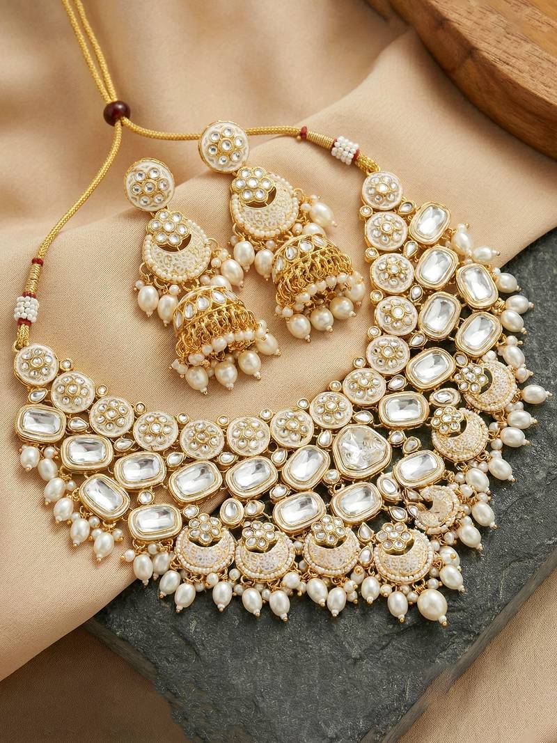 | Product Name | Lucky Jewellery Gold Plated Kundan White Beads Bridal Jewellery Set Traditional Designer Statement | |