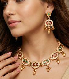 | Product Name | Lucky Jewellery Gold Plated Meenakari Red & Green Stone Necklace Set | |