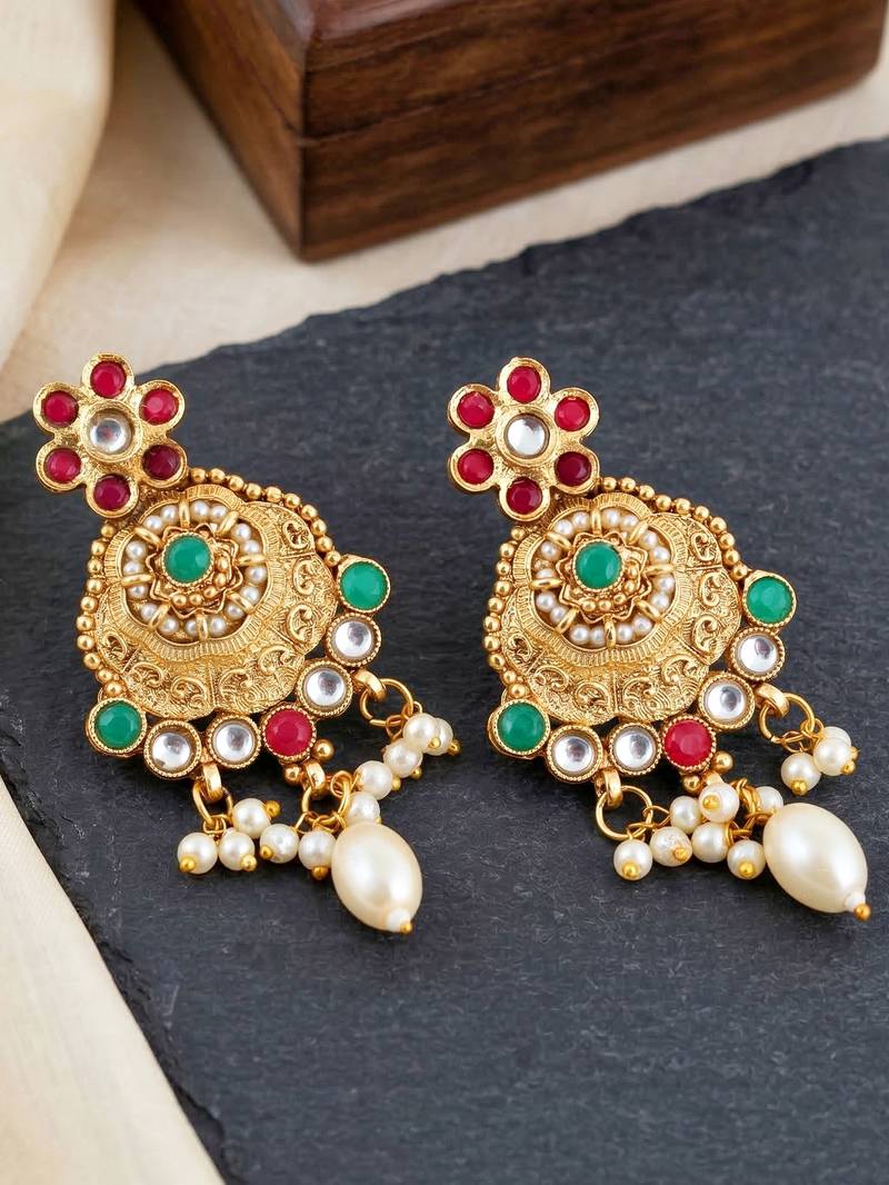 | Product Name | Lucky Jewellery Gold Plated Ruby & Green Color Long Traditional Necklace Set | |