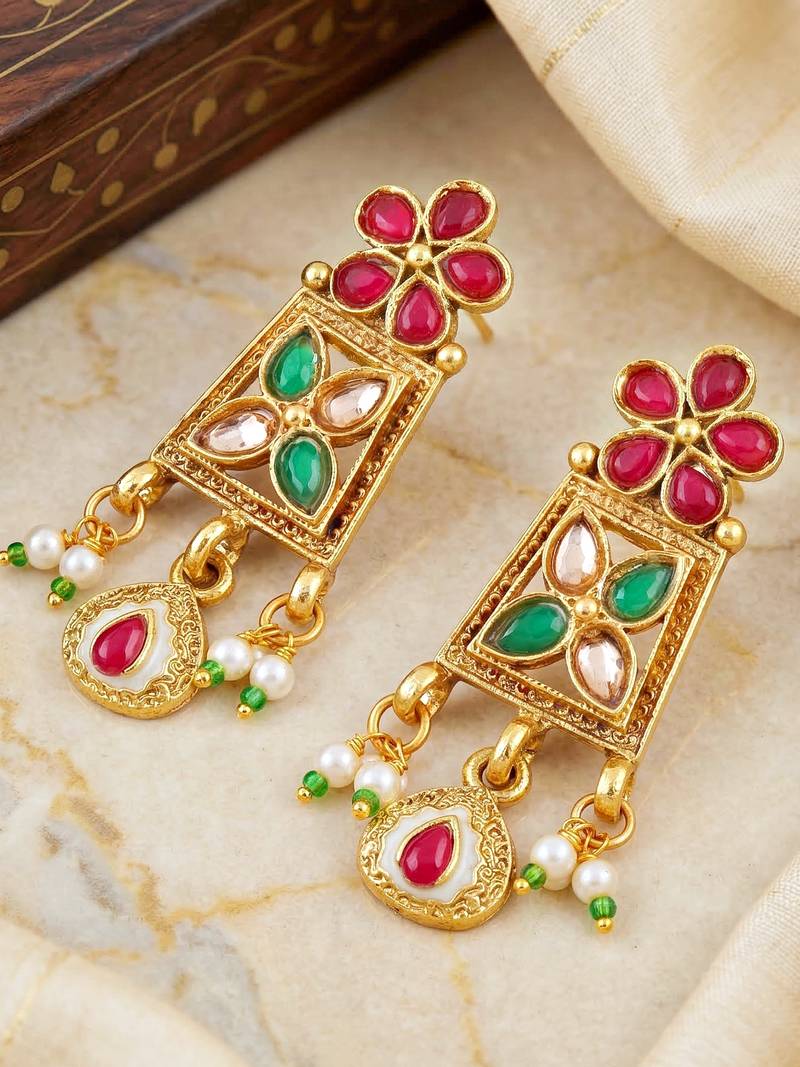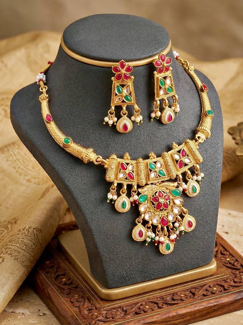 | Product Name | Lucky Jewellery Gold Plated Ruby & Green Color Traditional Necklace Set | |