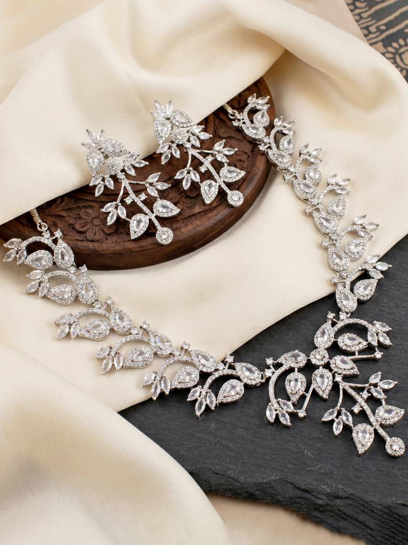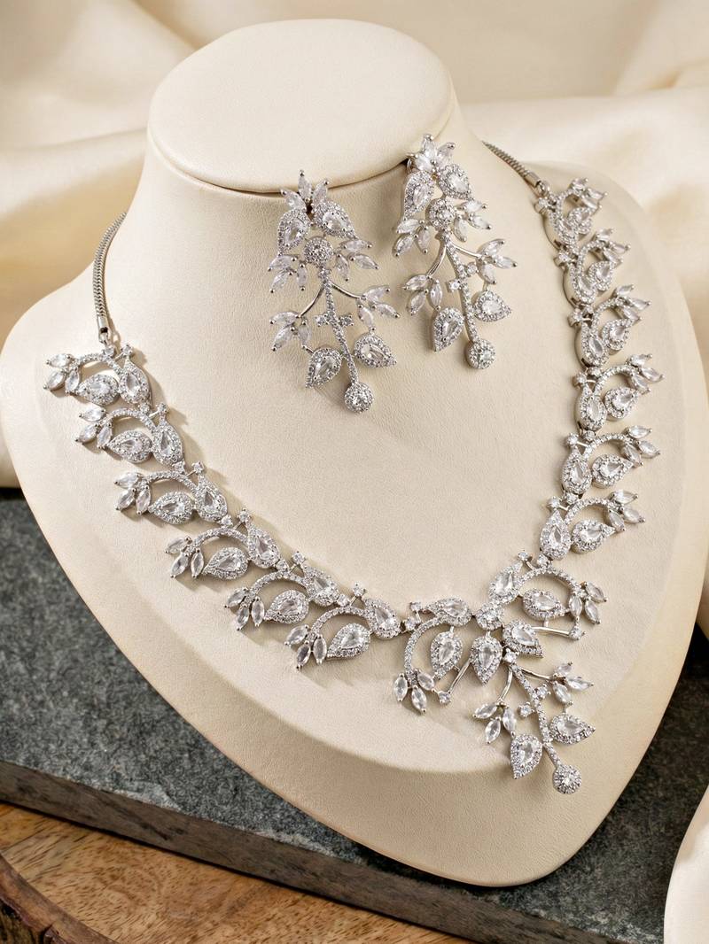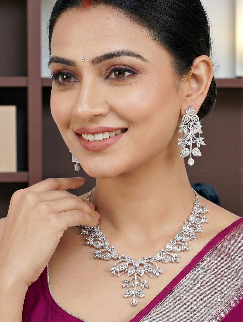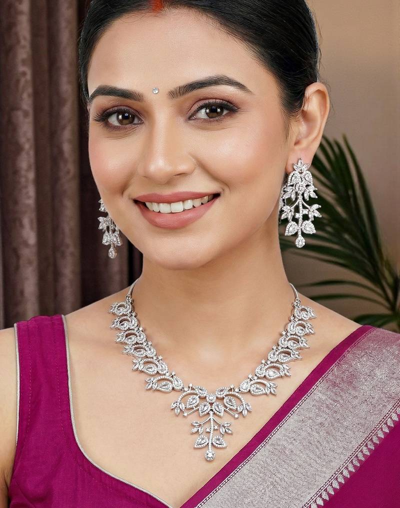 | Product Description | Add Effortless Elegance To Your Look With This Necklace Set From Lucky Jewellery, Crafted Using High Quality American Diamond Stones That Replicate The Sparkle Of Real Diamonds. The Refined Silver Tone Finish Gives The Set A Premium Look With Excellent Detailing. Designed For Corporate Functions, Small Parties, Festive Occasions, And Wedding Wear, This Versatile Necklace Set Balances Subtle Sophistication With Graceful Shine. It Is Stylish Enough For Special Events Yet Elegant Enough For Professional Settings. Lightweight And Comfortable For Long Hours, The Necklace And Matching Earrings Pair Beautifully With Sarees, Suits, Dresses, Gowns, And Indo Western Outfits. A Perfect Choice For Everyday Elegance, Celebrations, And Gifting. |