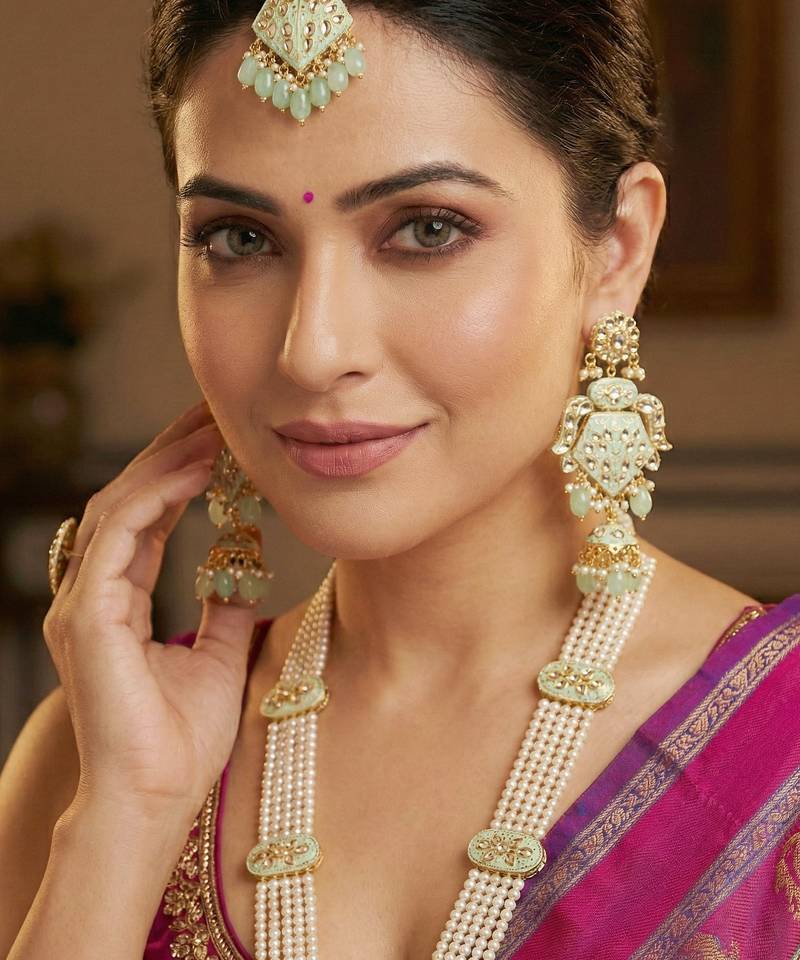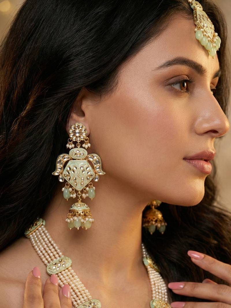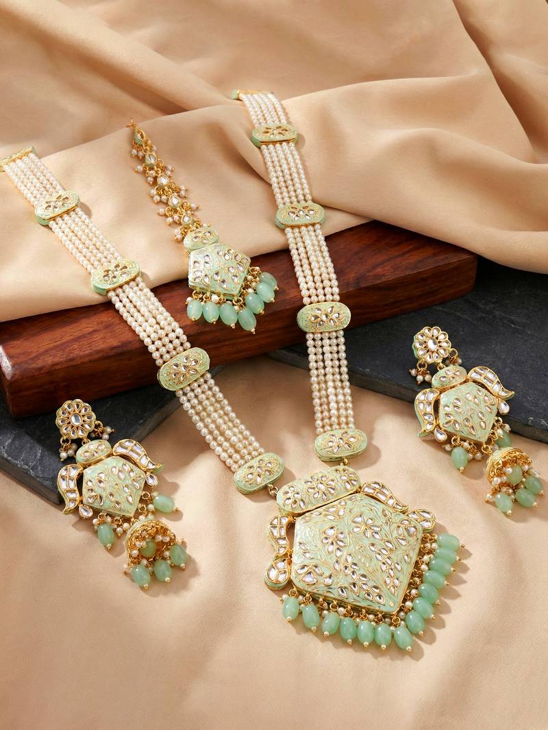 | Product Name | Traditional Mint Kundan & Pearl Long Necklace Set For Women | |