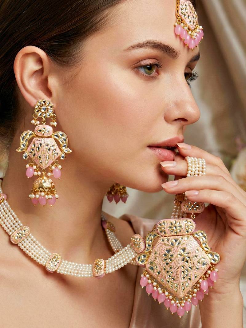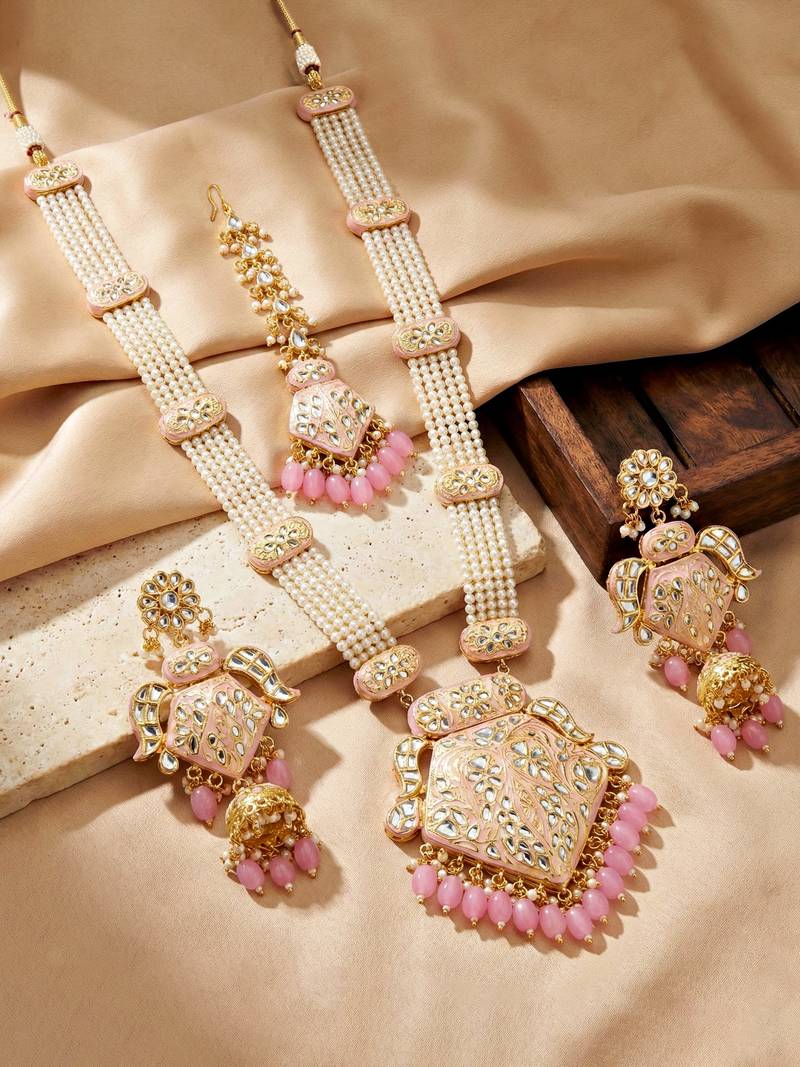 | Product Name | Traditional Pink Kundan & Pearl Long Necklace Set For Women | |
