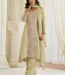 Beige silk blend sequins work semi stitched salwar suits suits size up to 42