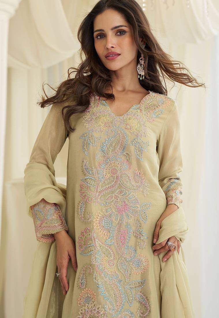 | • | Kameez | : | Color- Beige / Fabric- Silk Blend |