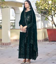 Green georgette sequins work semi stitched salwar suits suits size up to 42