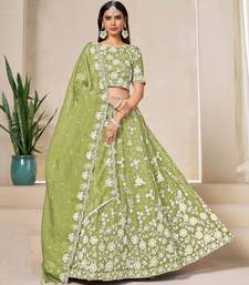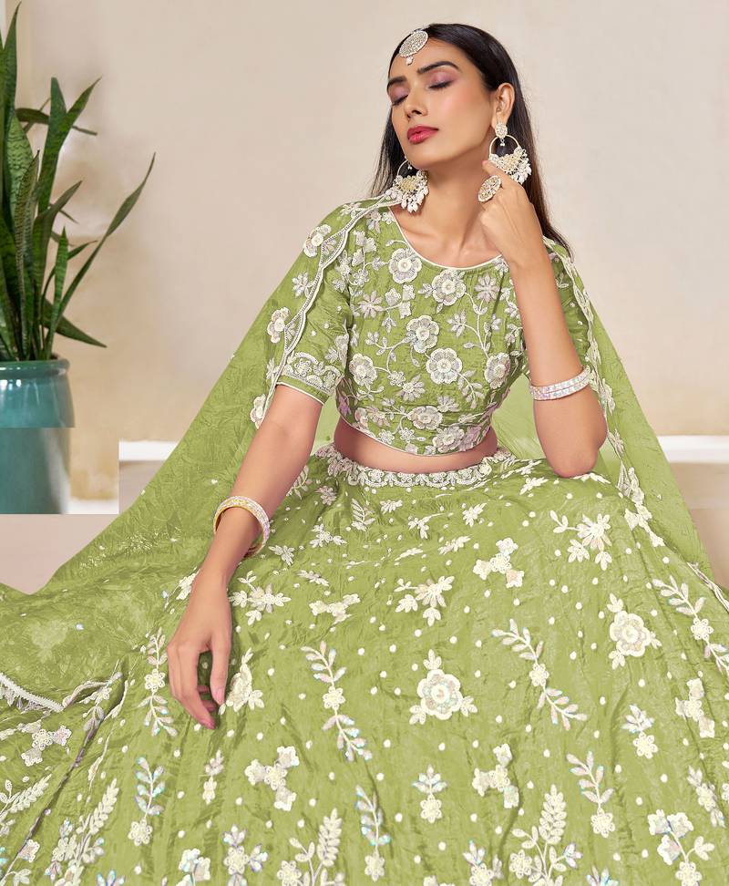 Green organza sequins work semi stitched lehenga choli size up to 42