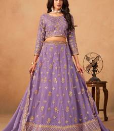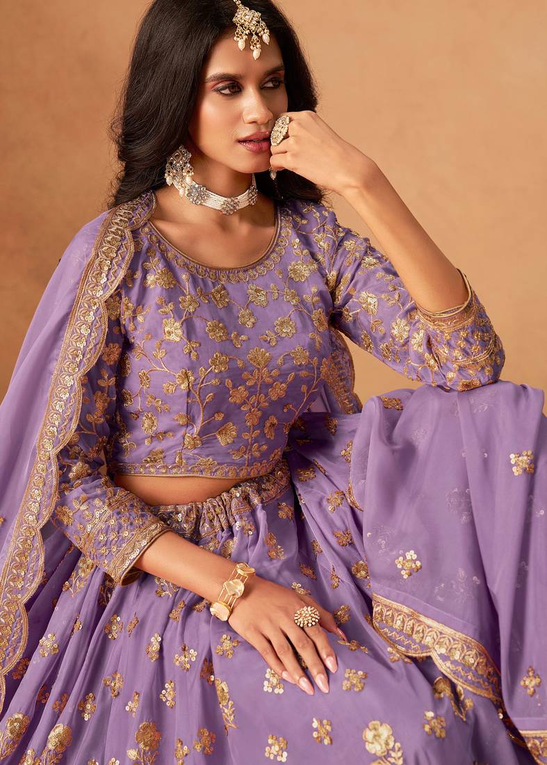 Lavender organza hand embroidery semi stitched lehenga choli size up to 42