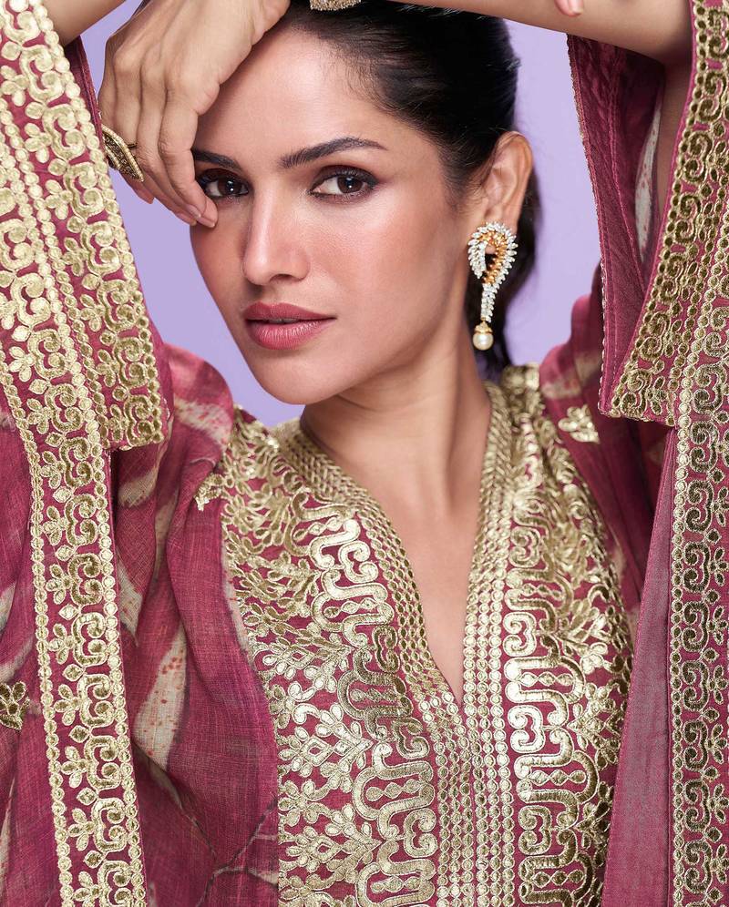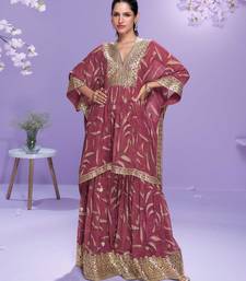 | Product Name | Mauve Embroidered With Gota Work & Printed Gerogette Kaftan Gharara Suit Free Size Stitching (Size Upto 42") | |