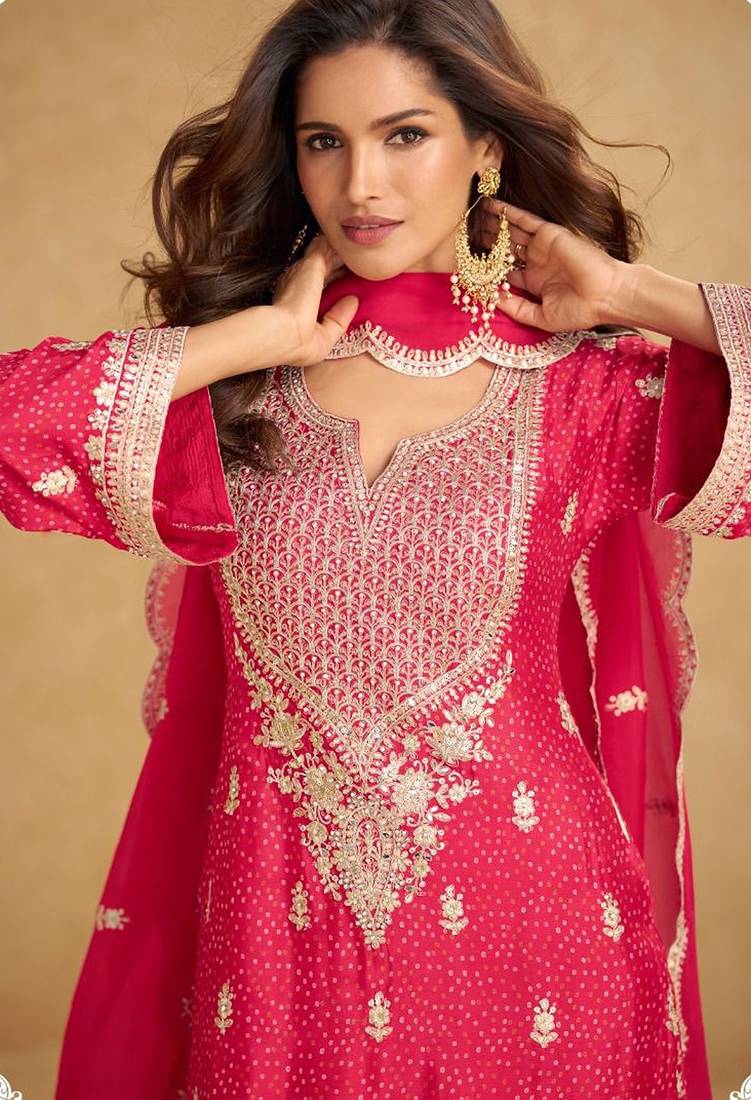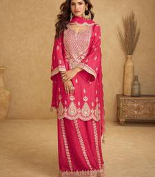 Pink chiffon sequins work semi stitched salwar suits suits size up to 42