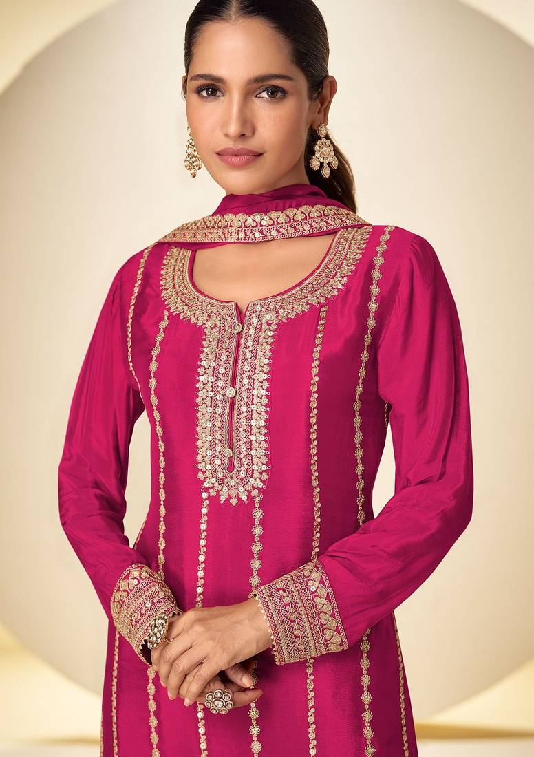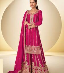 Pink chiffon sequins work semi stitched salwar suits suits size up to 42