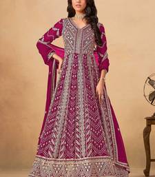 Pink faux georgette hand embroidery semi stitched salwar suits suits size up to 42