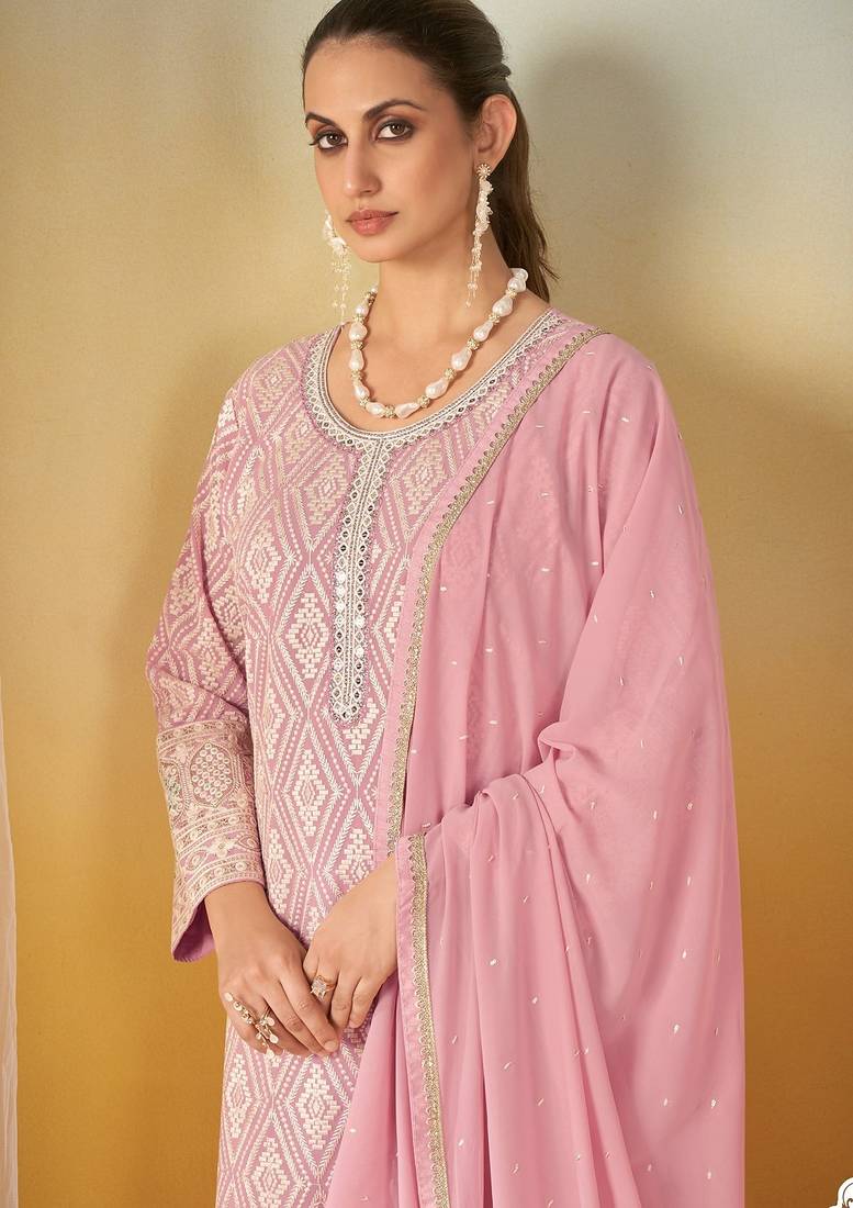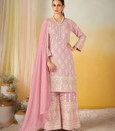 Pink georgette sequins work semi stitched salwar suits suits size up to 42