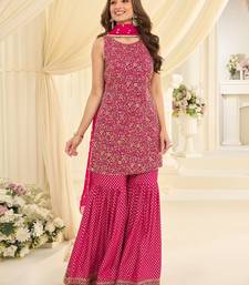 Pink georgette sequins work semi stitched salwar suits suits size up to 42
