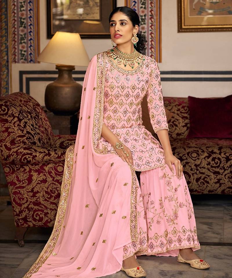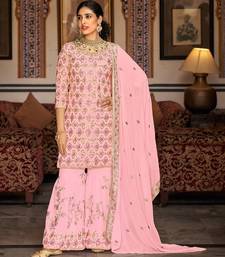 Pink georgette sequins work semi stitched salwar suits suits size up to 42